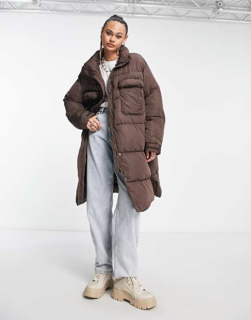 Sixth June Piumino lungo oversize marrone con tasche sul davanti Very well made.