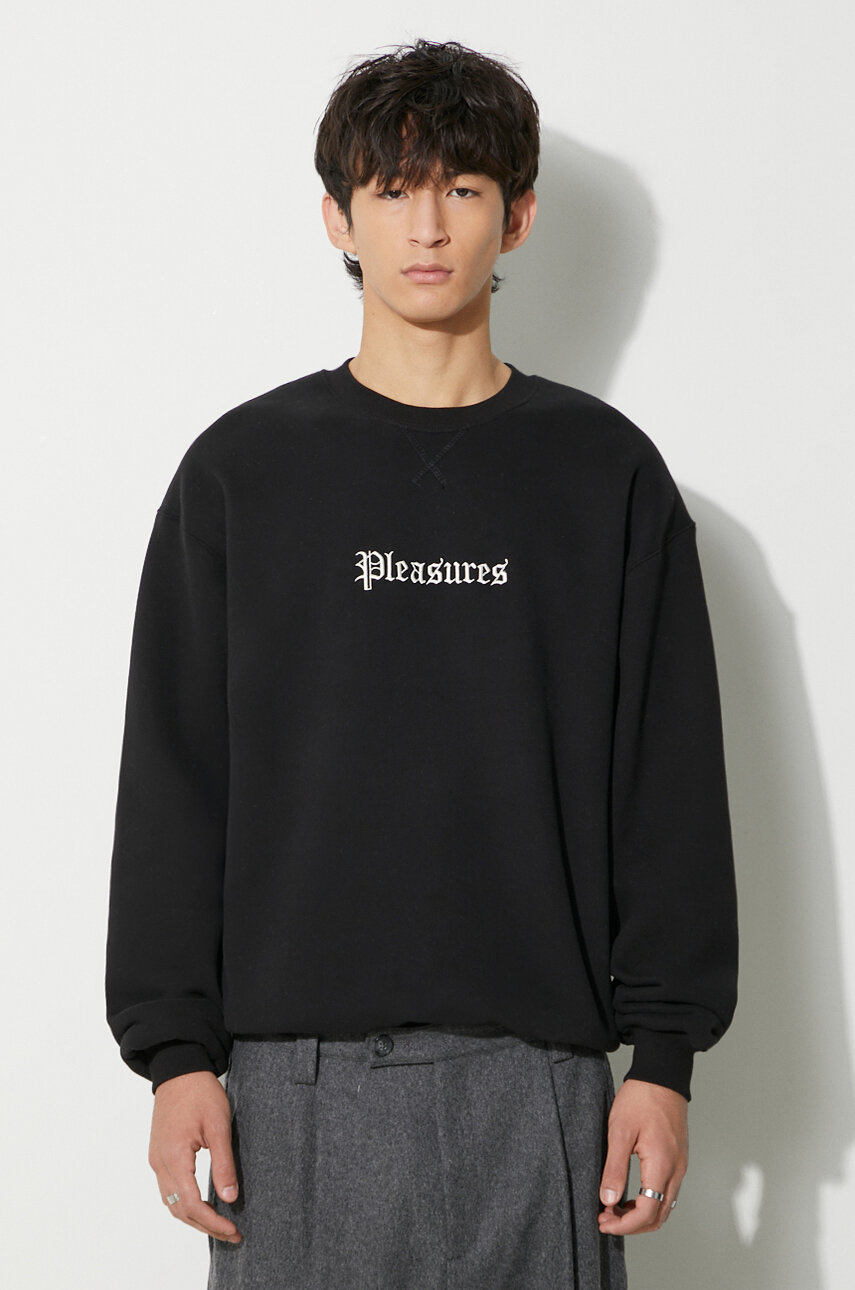 PLEASURES sweatshirt Recipe Crewneck men s black color P23F021 Very well made.