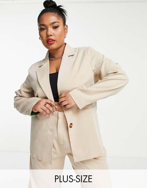 Daisy Street Plus oversized boyfriend blazer in tan with contrast Very well made.