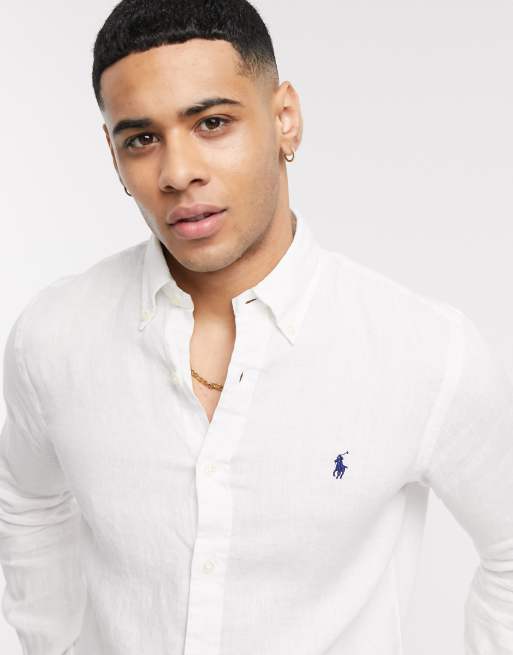 POLO RALPH LAUREN SLIM FIT LINEN SHIRT White Men s Linen Shirt Very well made.