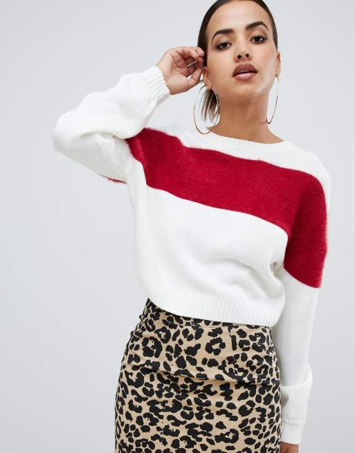 PrettyLittleThing contrast stripe fluffy jumper in cream Very well made.