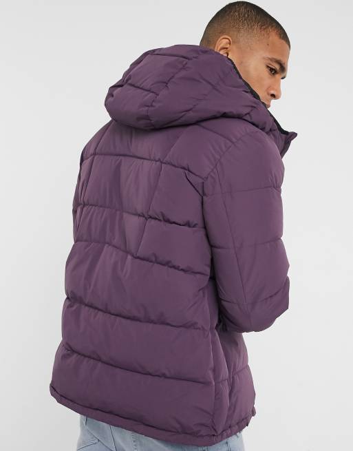 Pull Bear padded puffer jacket with hood in purple Very well made.