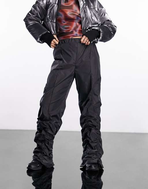 ASYOU nylon ruched cargo trouser in charcoal Very well made.