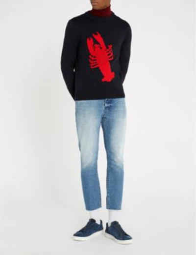 Lobster motif Knitted Jumper In Navy Blue Very well made.