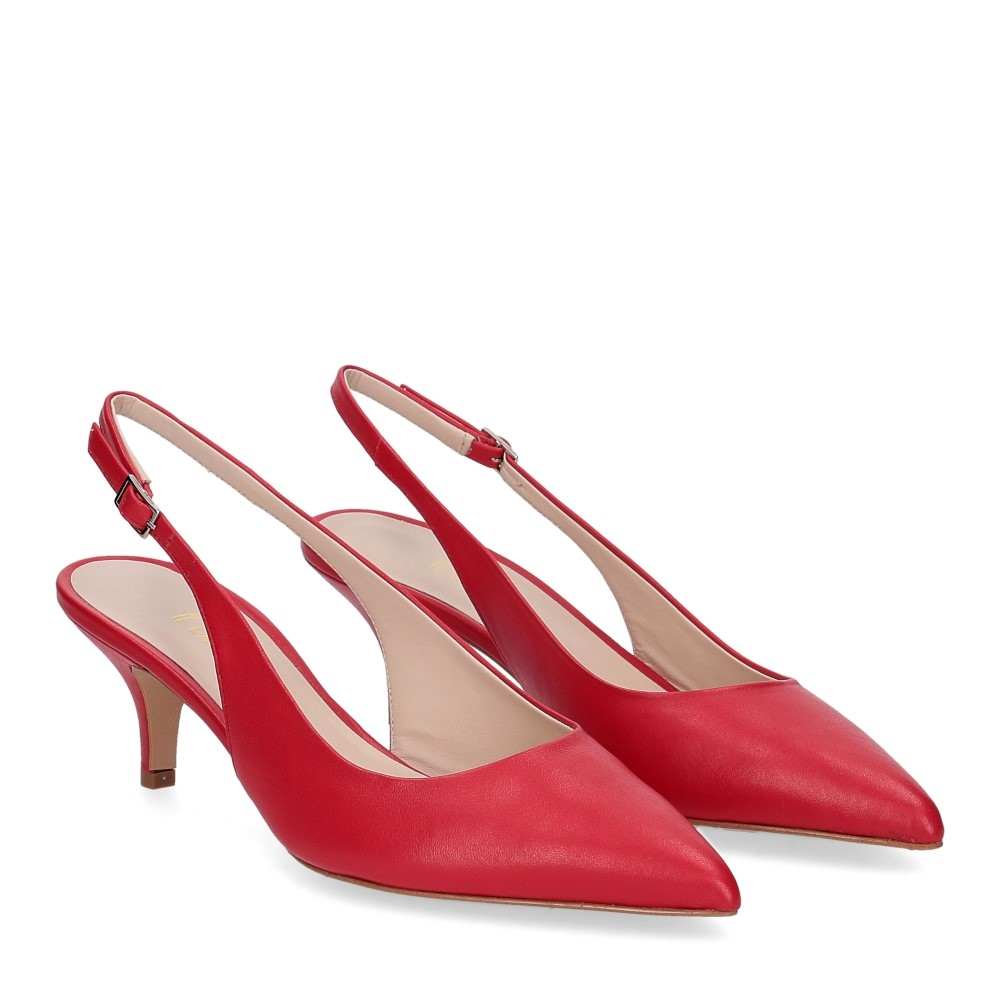 Decollete con tacco basso e cinturino rosse e nere Very well made.