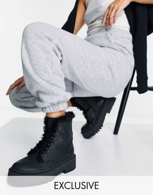 Steve Madden Skyhy F leather chunky soled boots with fur lining in Very well made.