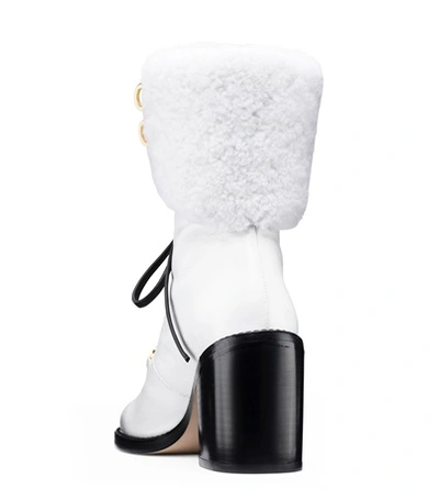 Stuart Weitzman Leather Faux Fur Trim Lace Up Boots White Boots Very well made.