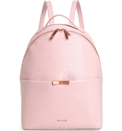 Jenyy Faceted Bow Leather Backpack Pink In Light Pink Very well made.