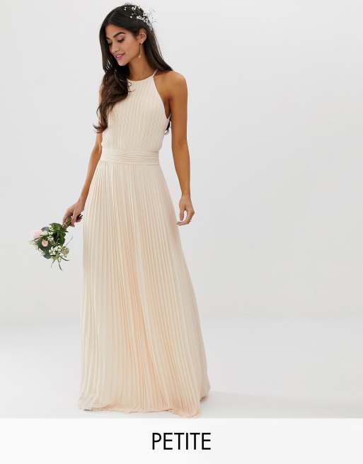 TFNC Petite bridesmaid exclusive high neck pleated maxi dress in pearl pink Very well made.