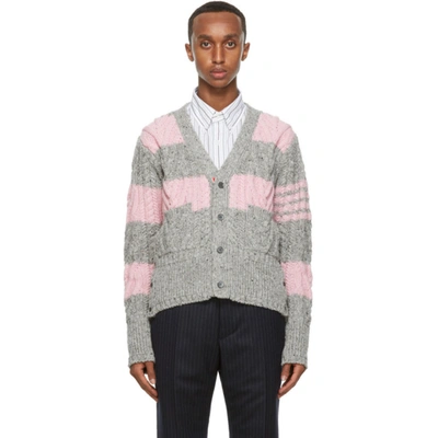 Thom Browne Pink Grey Mohair Aran Cable 4 bar Cardigan ModeSens Very well made.
