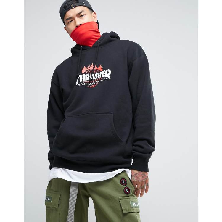 HUF x Thrasher Logo Hoodie With Back Print Very well made.