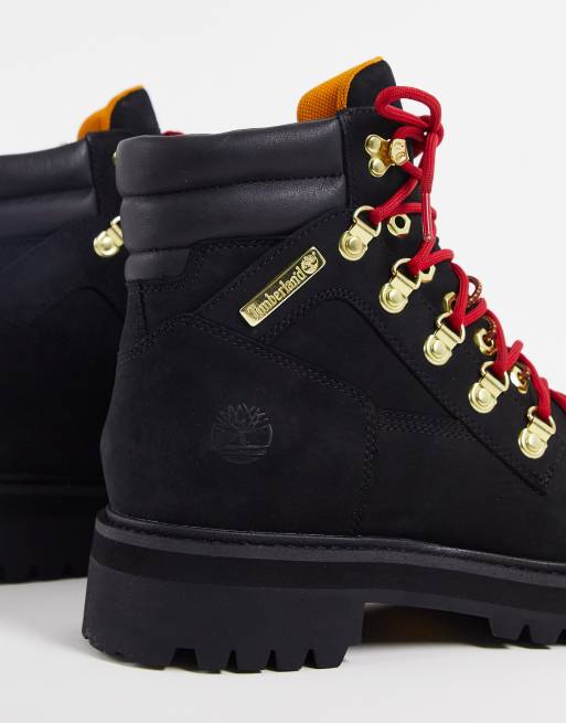 Timberland Ltd Heritage Vibram Lux Boots Womens Size 8 Black Red Lace Up NEW Very well made.