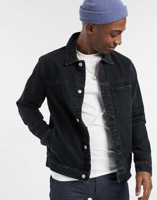 Topman Washed Black Borg Denim Jacket 110 Topman Lookastic Very well made.