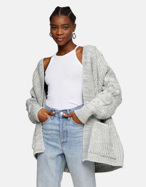 TOPSHOP Premium Knit Wide Rib Crew Neck Cardigan in Gray Lyst Very well made.