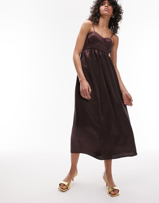 Topshop corset bust satin midi dress in chocolate Very well made.