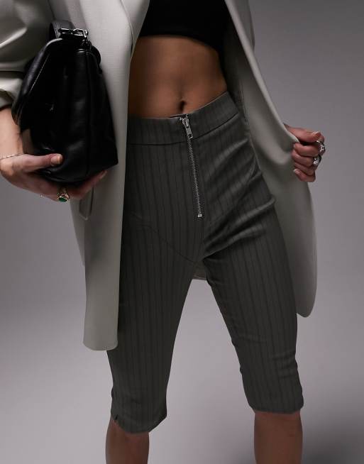Topshop zip front pin stripe capri pants in khaki Very well made.