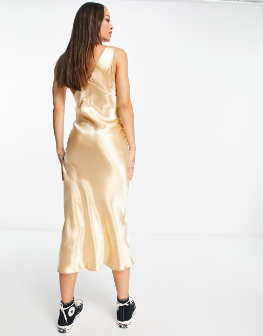 Topshop Goldenrod Plain Satin Sleeveless Slip Dress Size 10 V Neck Very well made.