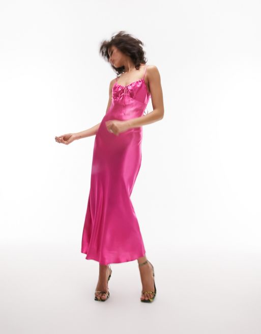 Topshop cami midi slip dress in fuchsia pink Very well made.