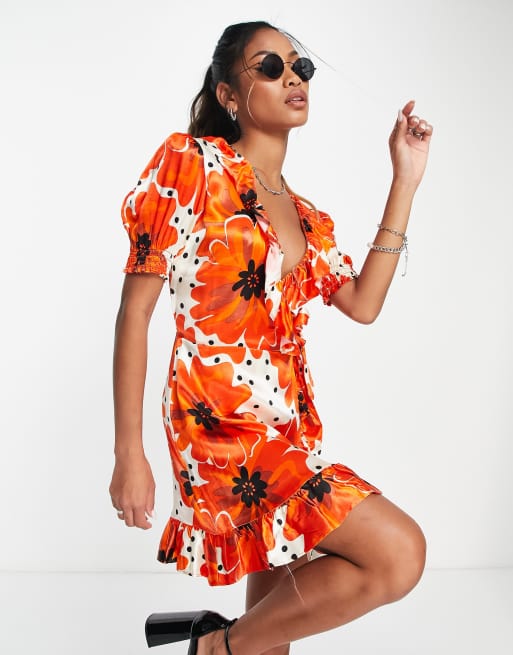 Topshop poppy spot floral wrap daisy mini dress in red Very well made.