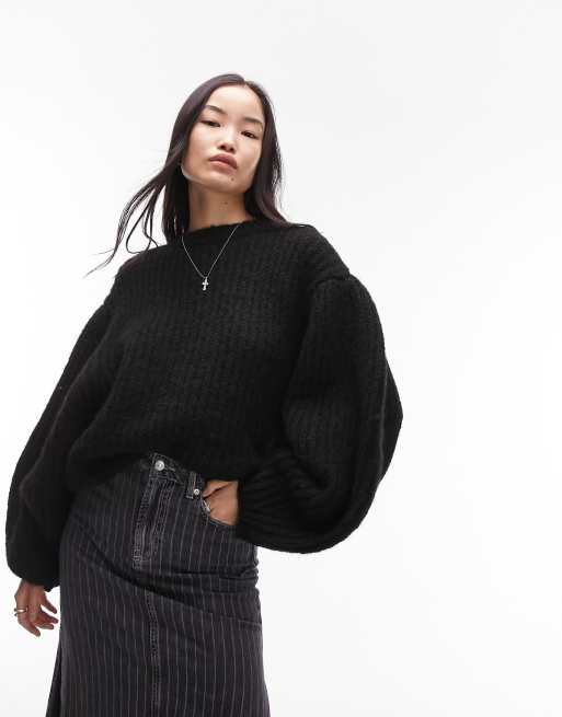 Topshop knitted volume sleeve fluffy jumper in black Very well made.