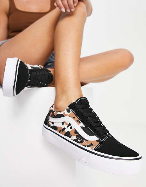 Vans Old Skool Sneaker in Schwarz mit Kuhfellmuster in Braun Very well made.