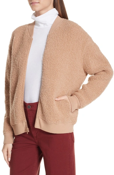 Vince Women s Boucl Knit Bomber Jacket in Camel Size Medium EUC Very well made.