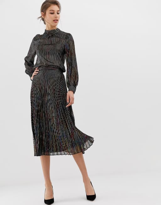 Warehouse pleated midi skirt in metallic rainbow Very well made.