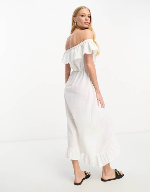 White Bardot Frill Midi Dress PrettyLittleThing Very well made.