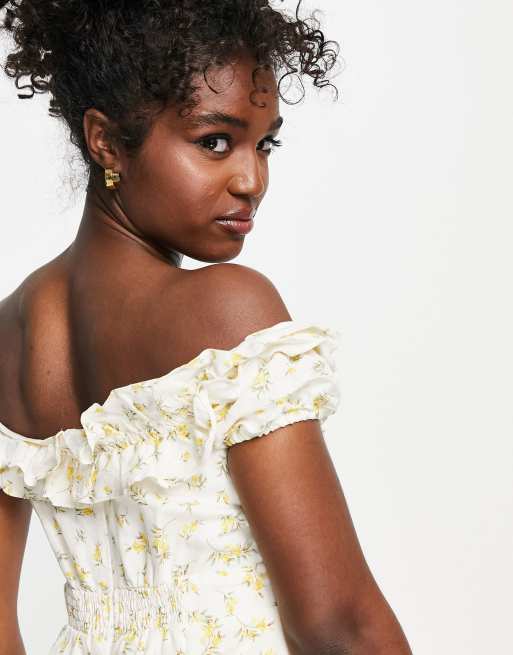 White Floral Off Shoulder Bardot Midi Dress SilkFred US Very well made.