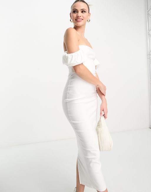 Vesper Tall bardot frill sleeve midi dress in white Very well made.