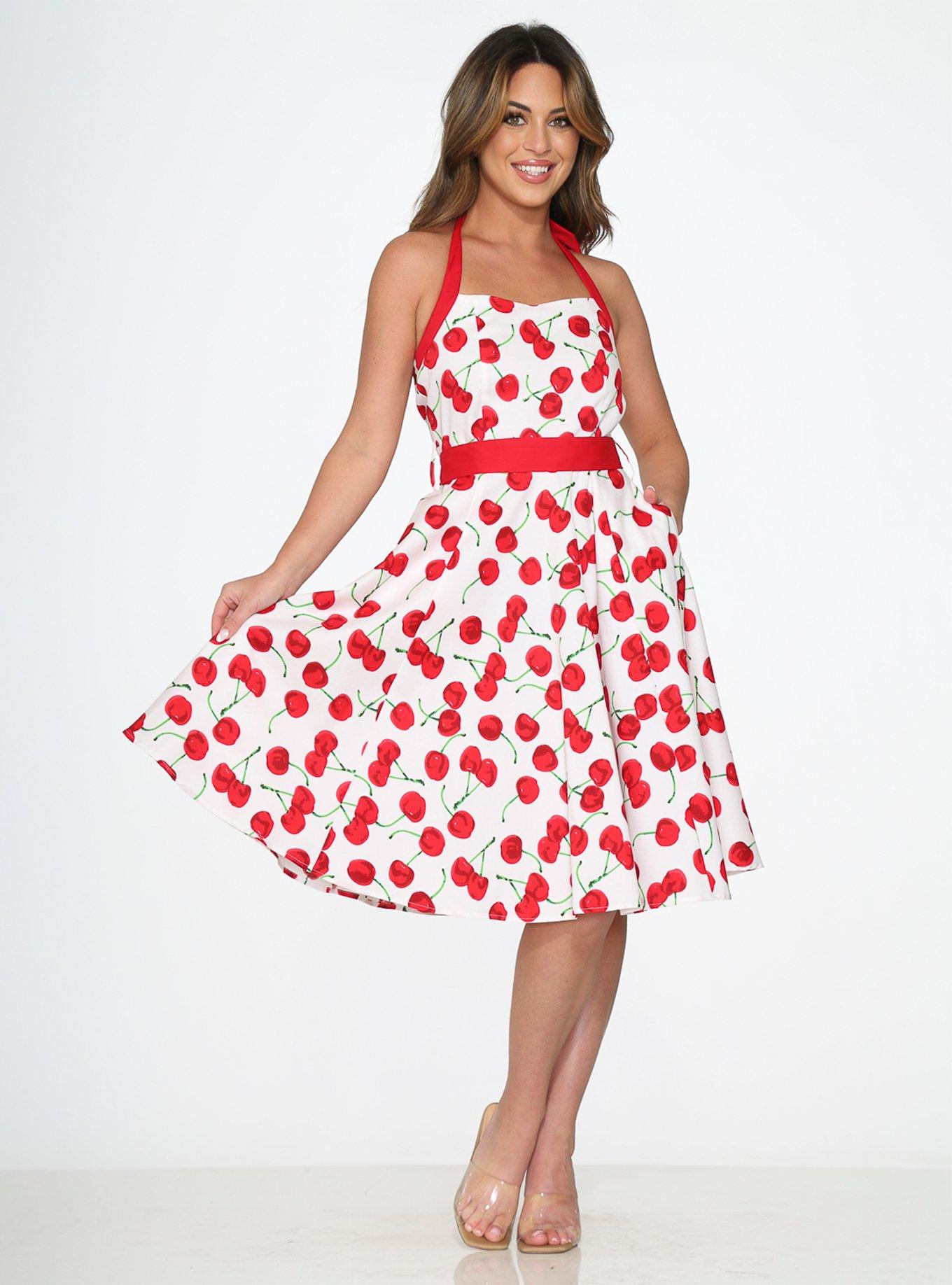 Eva Rose White Cherry Print Fit and Flare V neck Dress With Very well made.