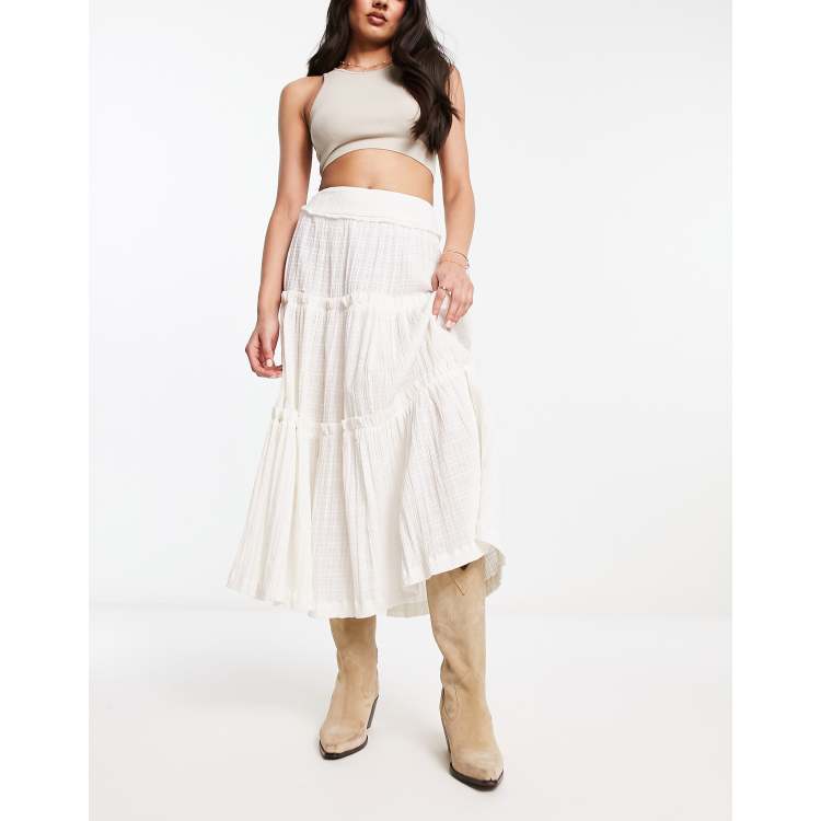 ASOS DESIGN tiered midi skirt in white Very well made.