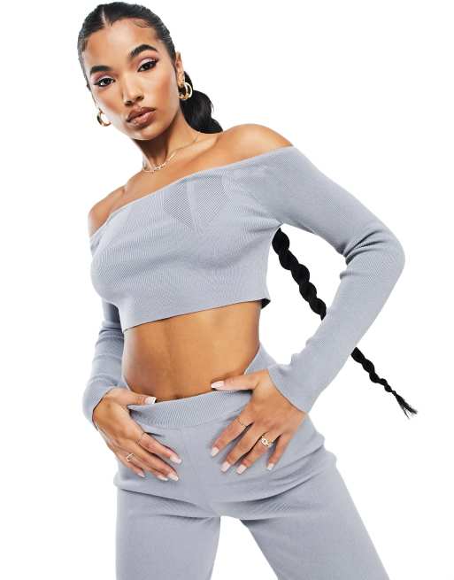 ASYOU knitted bardot crop top set in gray Very well made.