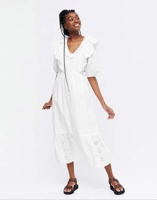 White Cotton Broderie Button Front Midi Dress Very well made.