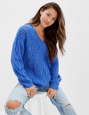 AE Oversized V Neck Cable Knit Sweater Very well made.