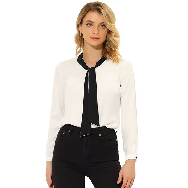 Women s Contrast Color Bow Tie Neck Blouse Long Sleeve Elegant Office Work Shirt Top Very well made.