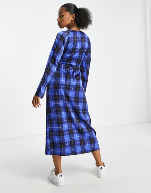 Zara Navy Blue Tartan Checked Plaid Dress With Zips Bloggers Sold Out XSmall XS Very well made.