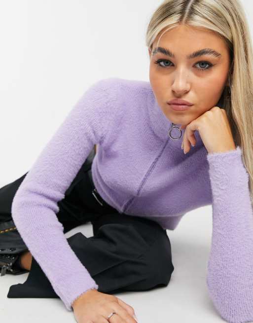 ASOS DESIGN sweater with zip collar in fluffy yarn in gray heather Very well made.