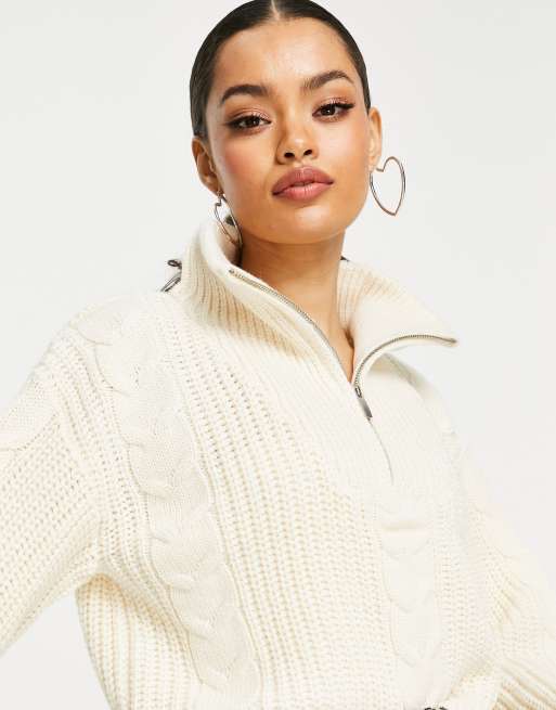 Topshop Petite cable zip up knit sweatshirt in ecru Very well made.