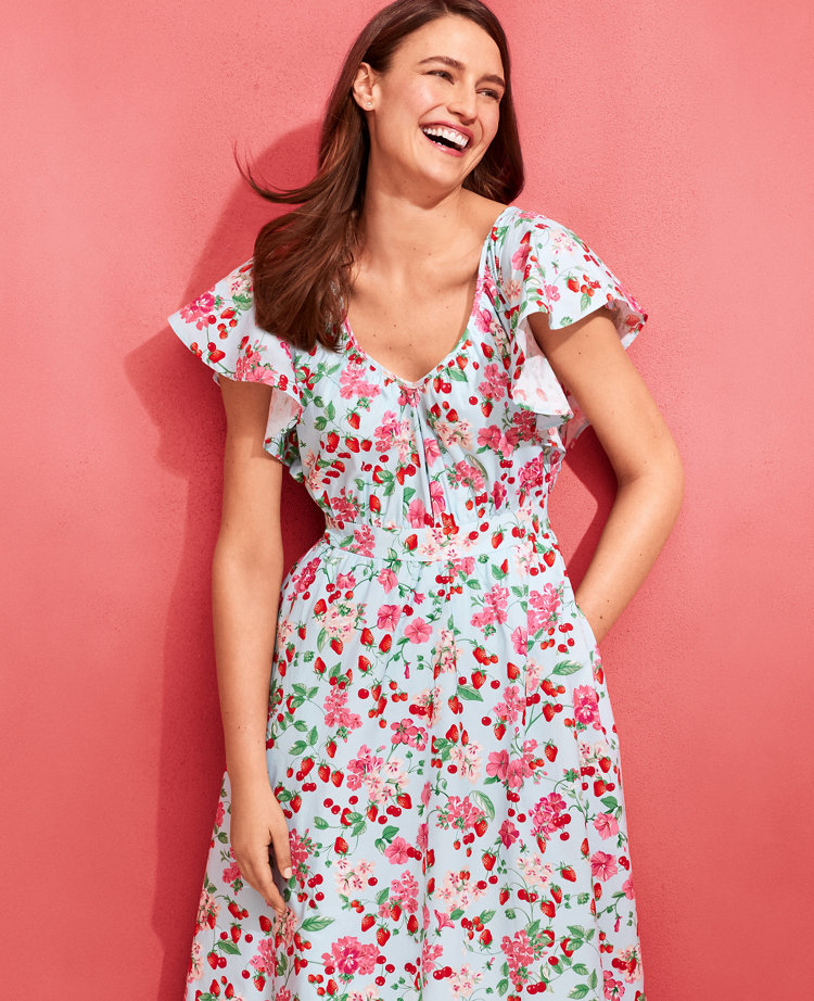 Petite Floral Flutter Sleeve Flare Dress Very well made.