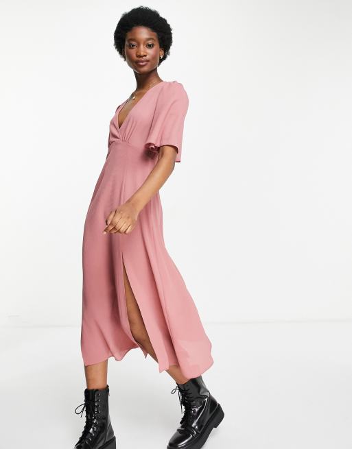 ASOS DESIGN angel sleeve midi dress in mink Very well made.