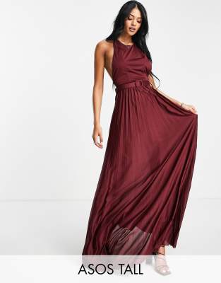 ASOS DESIGN Tall halter belted pleated maxi dress in red ASOS Very well made.