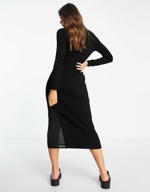 ASOS DESIGN long sleeve ribbed midi dress with satin insert in black Very well made.