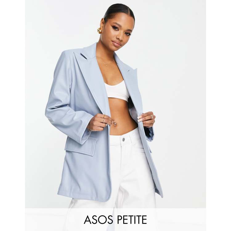 ASOS DESIGN Petite faux leather dad blazer jacket in blue Very well made.
