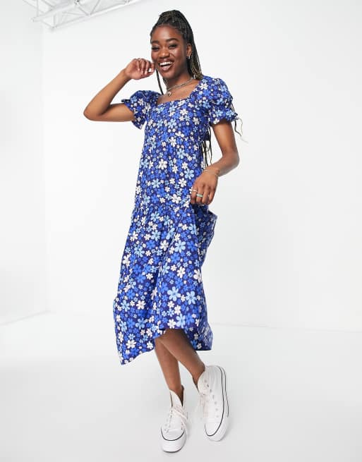 ASOS EDITION tiered midi dress with puff sleeve in blue floral print Very well made.