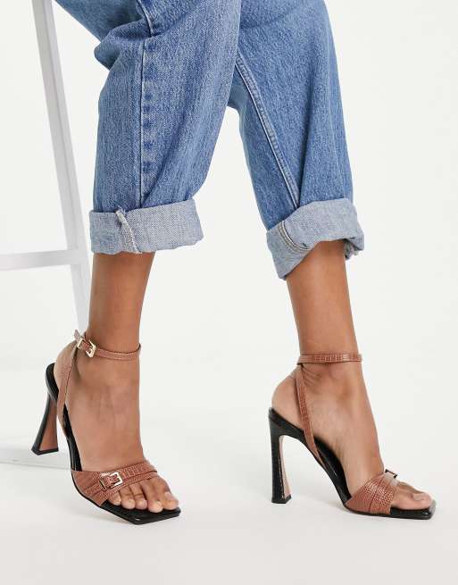 ASOS DESIGN Newman buckle detail heeled sandals in tan and black Very well made.