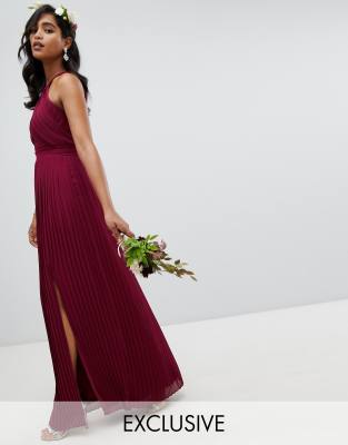 TFNC pleated bridesmaids maxi dress in burgundy Very well made.