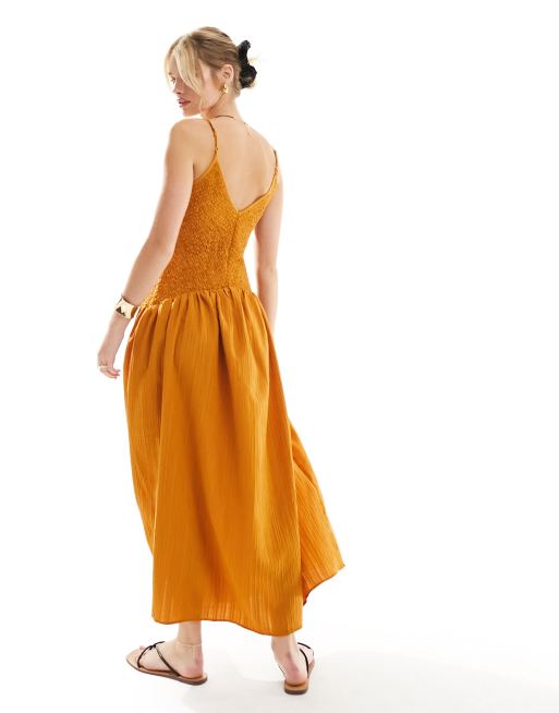 ASOS DESIGN full skirt midi crinkle sundress in burnt orange Very well made.