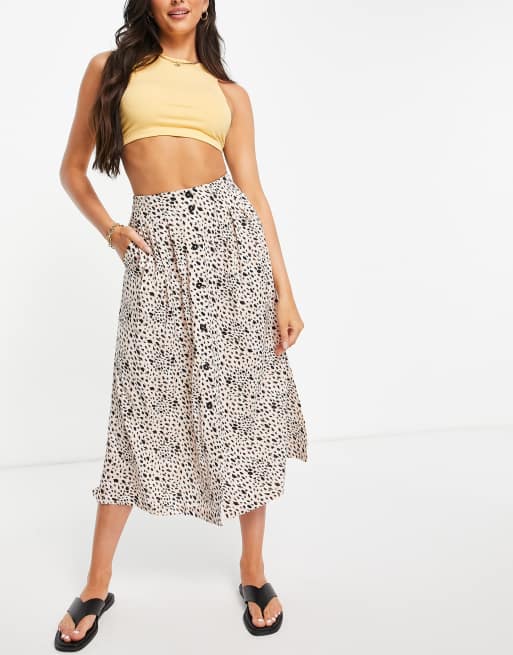 ASOS DESIGN button through midi skirt with split in mono daisy Very well made.