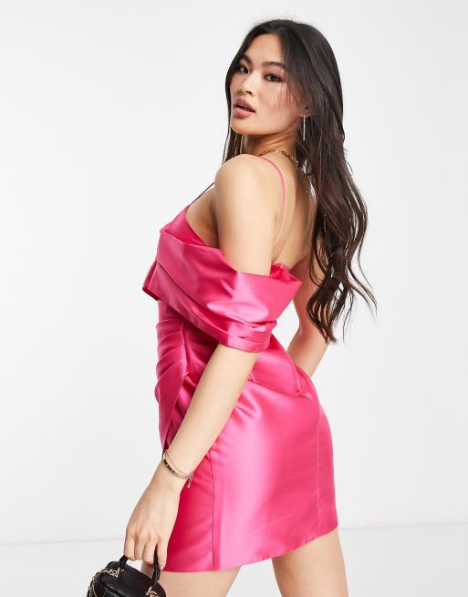 ASOS DESIGN bowbust satin mix midi dress in dark pink Very well made.